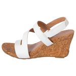 Estos tacones de cuña Comfort Plus para mujer ofrecen un diseño elegante y cómodo para cualquier ocasión. Su suela de corcho es ligera y duradera, mientras que las correas cruzadas blancas proporcionan un ajuste seguro y un tacto sofisticado.